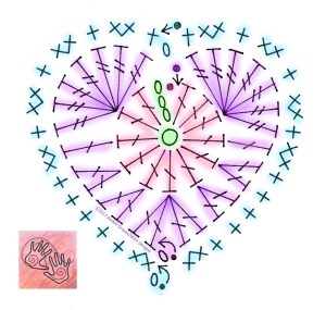 I thought I would end NatCroMo with a re-vamped Stitch Chart of my Crochet Love heart. You can find the original pattern for the first 2 rounds on my blog post here, and the border round is in my blog post from this February here.