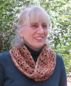 For those that don’t feel like working the moebius off a twisted foundation, there is always my Springtime Cowl. This pattern is available here on my blog and used 2 balls of the yarn for the sample. It is a simple stitch with the twist added when the 2 ends are sewn together.